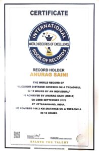 इस रिकॉर्ड के लिए उन्होंने 23 सितंबर 2022 को एनीटाइम फिटनेस विशाल खंड गोमती नगर शाखा में रात 9.20 बजे शुरू किया और पूरी रात 9.20 बजे तक पूरे 12 घंटे तक दौड़ते रहे।