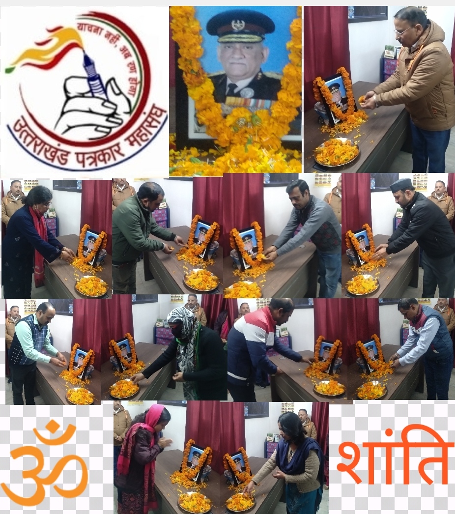 उत्तराखंड पत्रकार महासंघ ने दी सी. डी. एस स्वर्गीय जनरल विपिन रावत को श्रद्धांजलि।